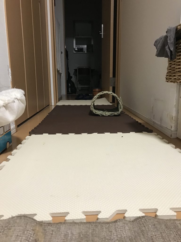俺も行けるって!てな感じでチャレンジするから廊下に敷いたよ、マット。