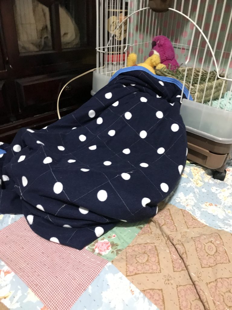 じみなんて離れたとこからぴょん!!てケージに入るのに相変わらず寝る前に足が引っ掛からんかすぐケージ入れるかって思ってやってしまう。