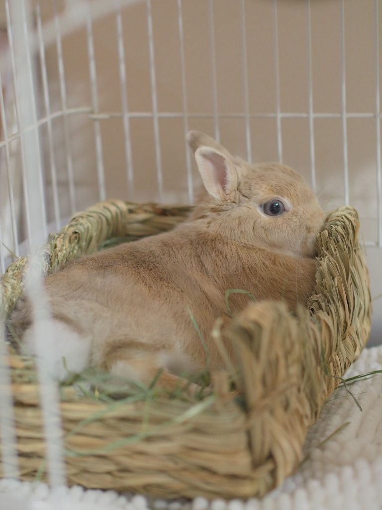 ニトリ冷え冷えベッドもお気に入りやけどこの藁ベッドもお気に入りのじみちゃん。