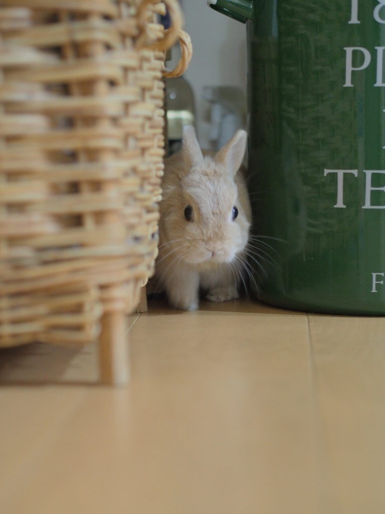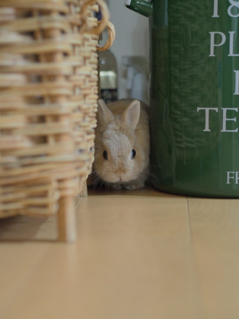 今、キッチンのゴミ箱の後ろが大好きなじみちゃん。毎度毎度、好きな場所がよう変わるね、じみちゃんは。