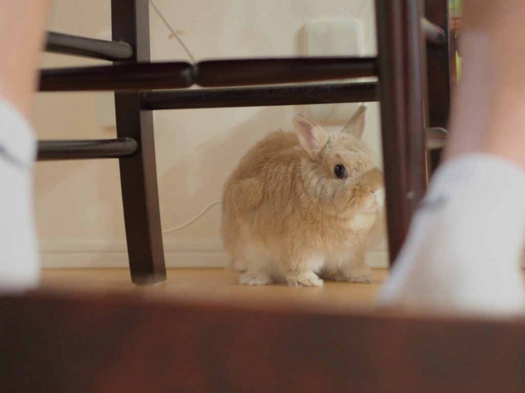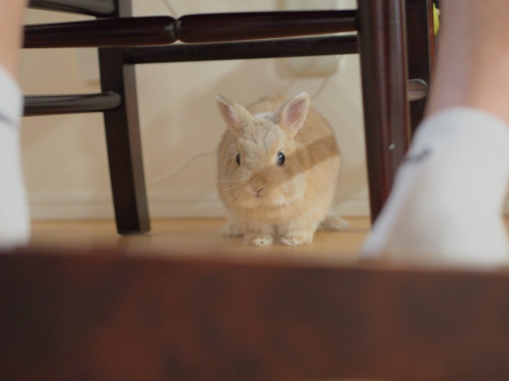朝ごはん食べてるパンイチの足元で撫でてもらうのを待つじみちゃん。携帯見ながら食べるから食べ終わるのおっそい!おっそい!!!