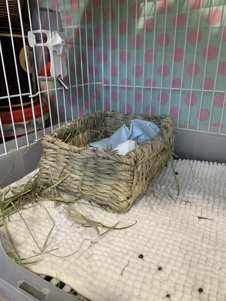 それぞれのケージに藁のカゴを入れてるんやけどね。