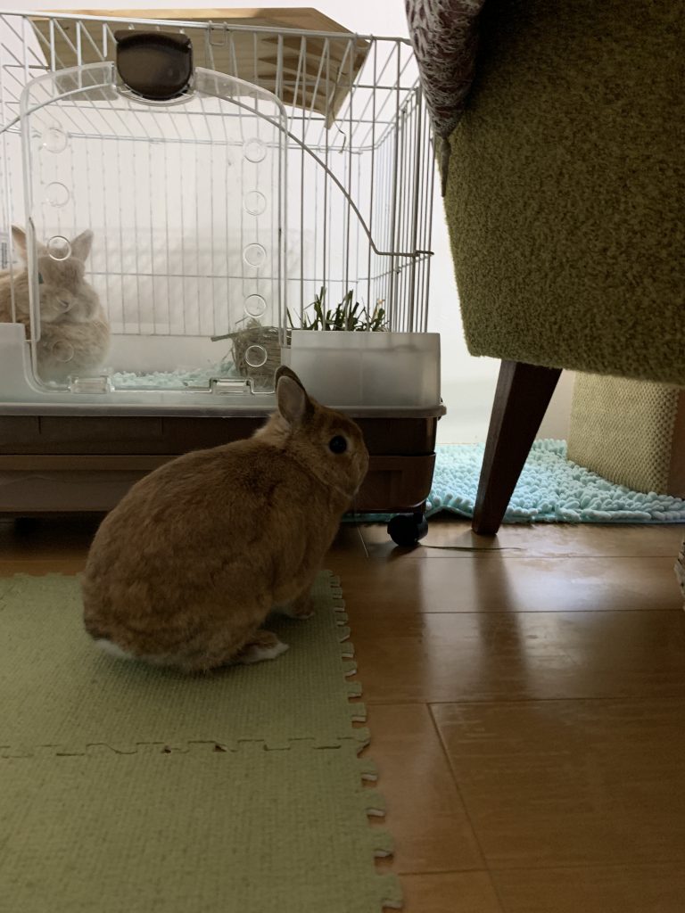 いつでも盗めるようにここでケージからハミ出るチモシー狙ってる奥目ちゃん。