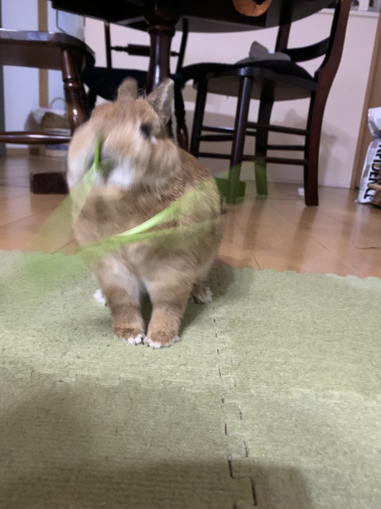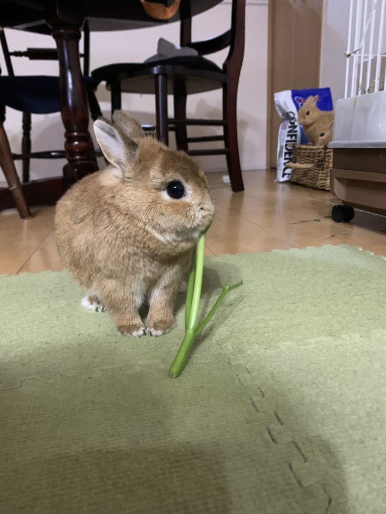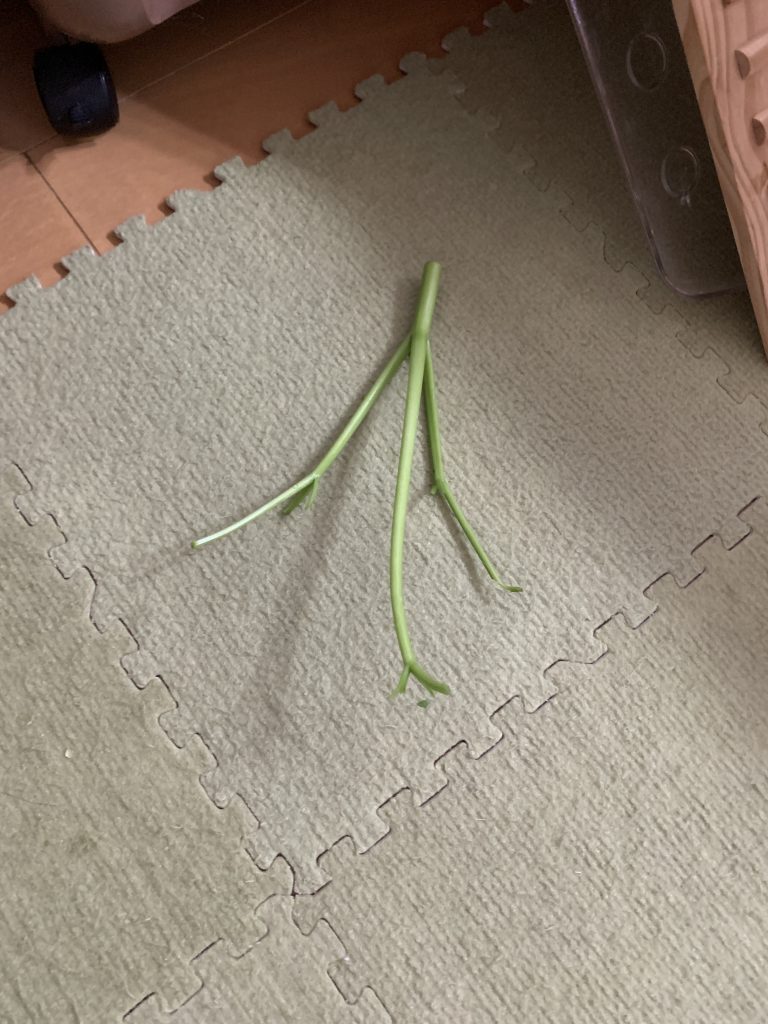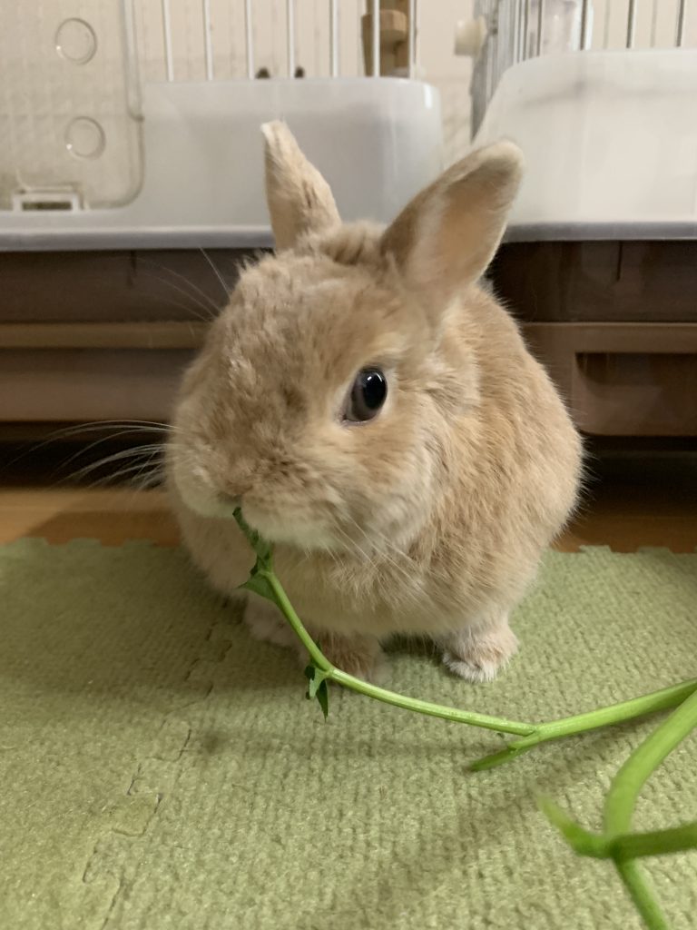 から届いた明日葉を美味しそうに食べるんやけど相変わらず茎はお残し。