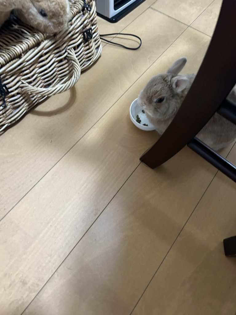 朝ごはんダイニングのテーブルの私の椅子の下辺りに置いてるんやけど…