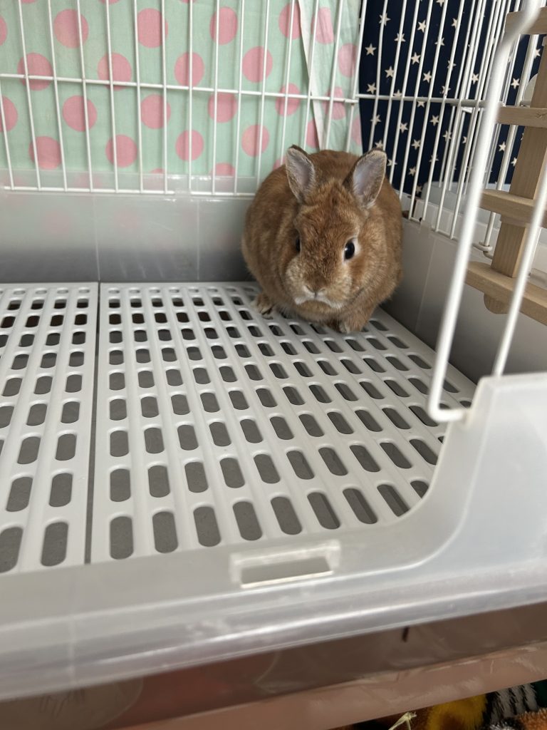 チャリが「ごめんなさい…」て感じでケージに入ってしょぼくれてた。